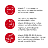 Indeholder bl.a. A-, C- og D-vitamin, zink og selen, der bidrager til immunsystemets normale funktion. Cholin bidrager til at vedligeholde en normal leverfunktion.