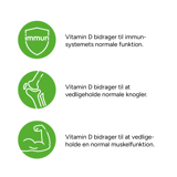 Bidrager til at vedligeholde normale knogler, tænder og Muskelfunktion samt immunforsvaret