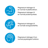 Ingredienser: Magnesiumhydroxid, fyldemidler (mikrokrystallinsk cellulose, hydroxypropylmethylcellulose), antiklumpningsmidler (siliciumdioxid, magnesiumsalte af fedtsyrer, fedtsyrer), overfladebehandlingsmiddel (talkum).