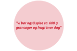 Alligevel spiser voksne i gennemsnit kun ¾ af den mængde frugt og grønt, de burde, og det er kun hver sjette der får tilstrækkeligt frugt og grønt i sig.